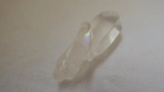 こちらの一片は、そんなセプター・クォーツに小さな別のクォーツの結晶柱が寄り添ったブリッジ・クォーツでもあり、その2つの結晶の接着面にシャープな印象のレインボーが現われています
