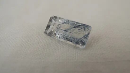Quartz with Internal Indicolite, blue tourmaline and blue actionolite <Faceted> (Melody Small Stone Collection)