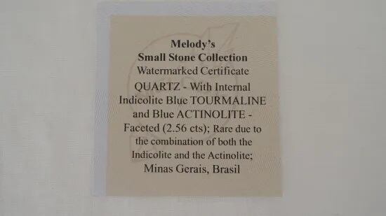 証明書には「インディコライトとアクチノライトの両方が内包されている点で希少である」と記載されています