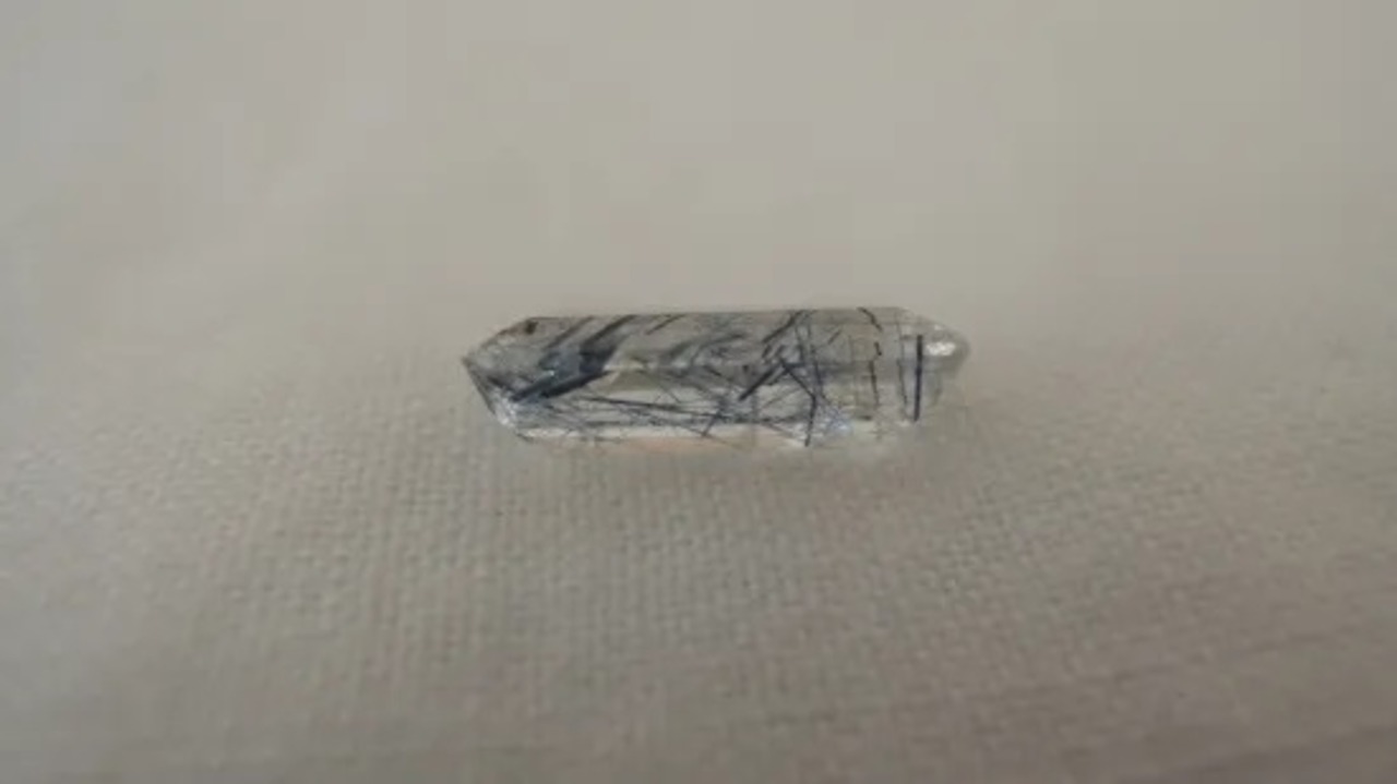 ファセット加工されたクォーツに、インディコライト、青のトルマリン、青のアクチノライトが内包されたものです