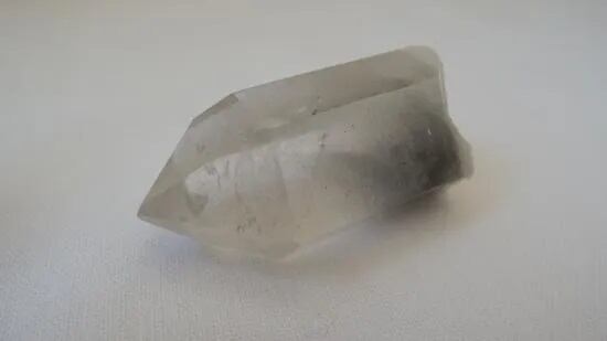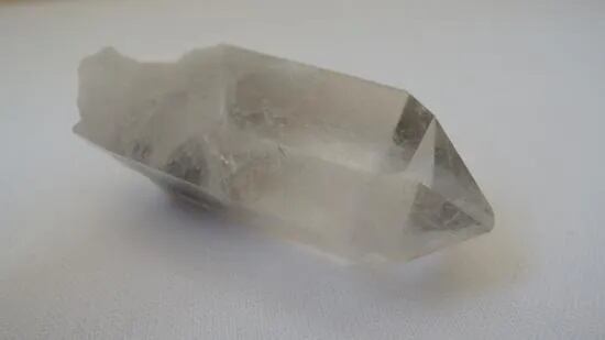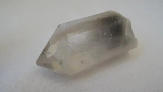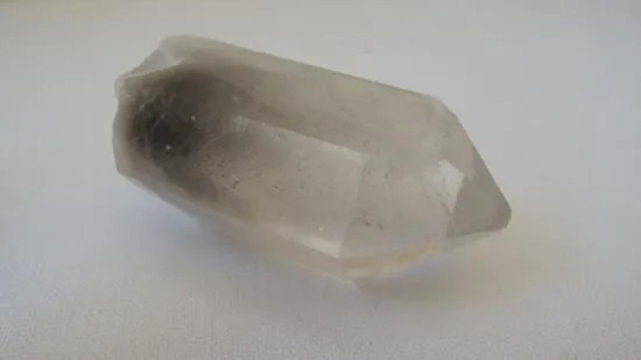 こちらは結晶柱の面ひとつとターミネイションのファセットの1面に他の結晶の成長による干渉を受けたと思われる凹みがあります