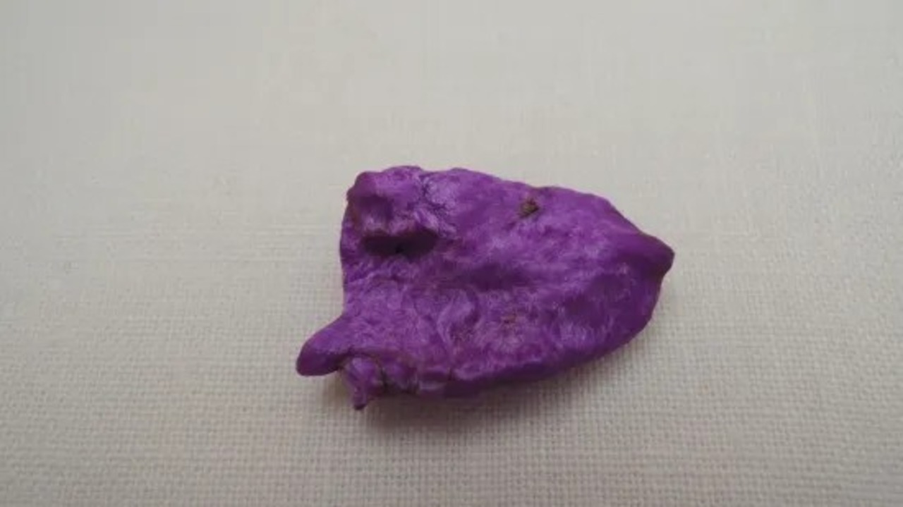 こちらの一片は「繊維状」に結晶した珍しくも美しいスギライトです