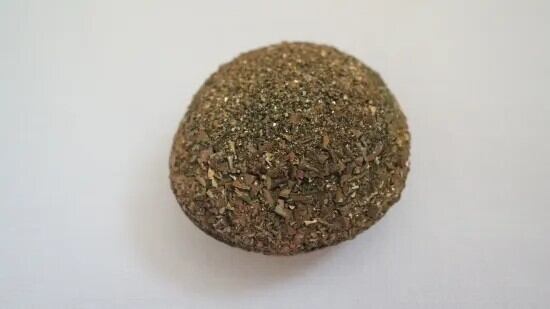 こちらは平たい形のちょっと大き目のボージャイで、どちらの面もほんのりオレンジっぽさのある、華やかなイエローゴールドの輝きが温もりのある一片です