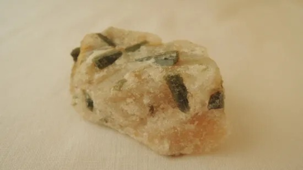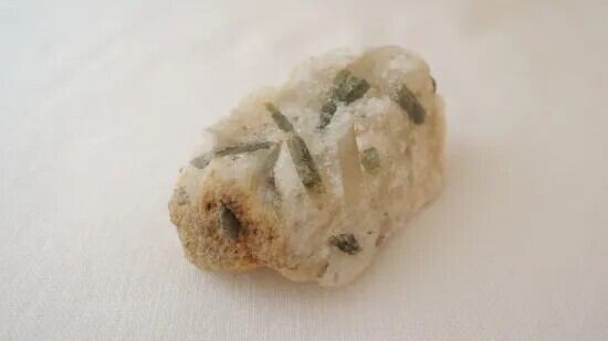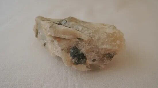 白いホルタイトに、(おそらく珍しい)グリーンのデュモルティエライトが含まれた一片です