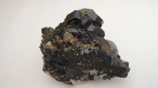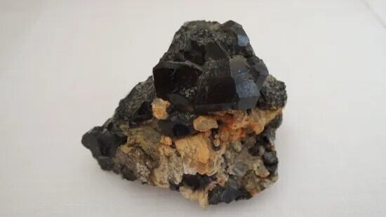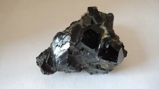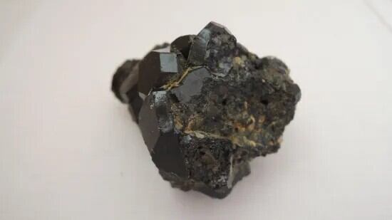 ブラック・ガーネットとも呼ばれるメラナイトの結晶が美しい形で寄り集まっています