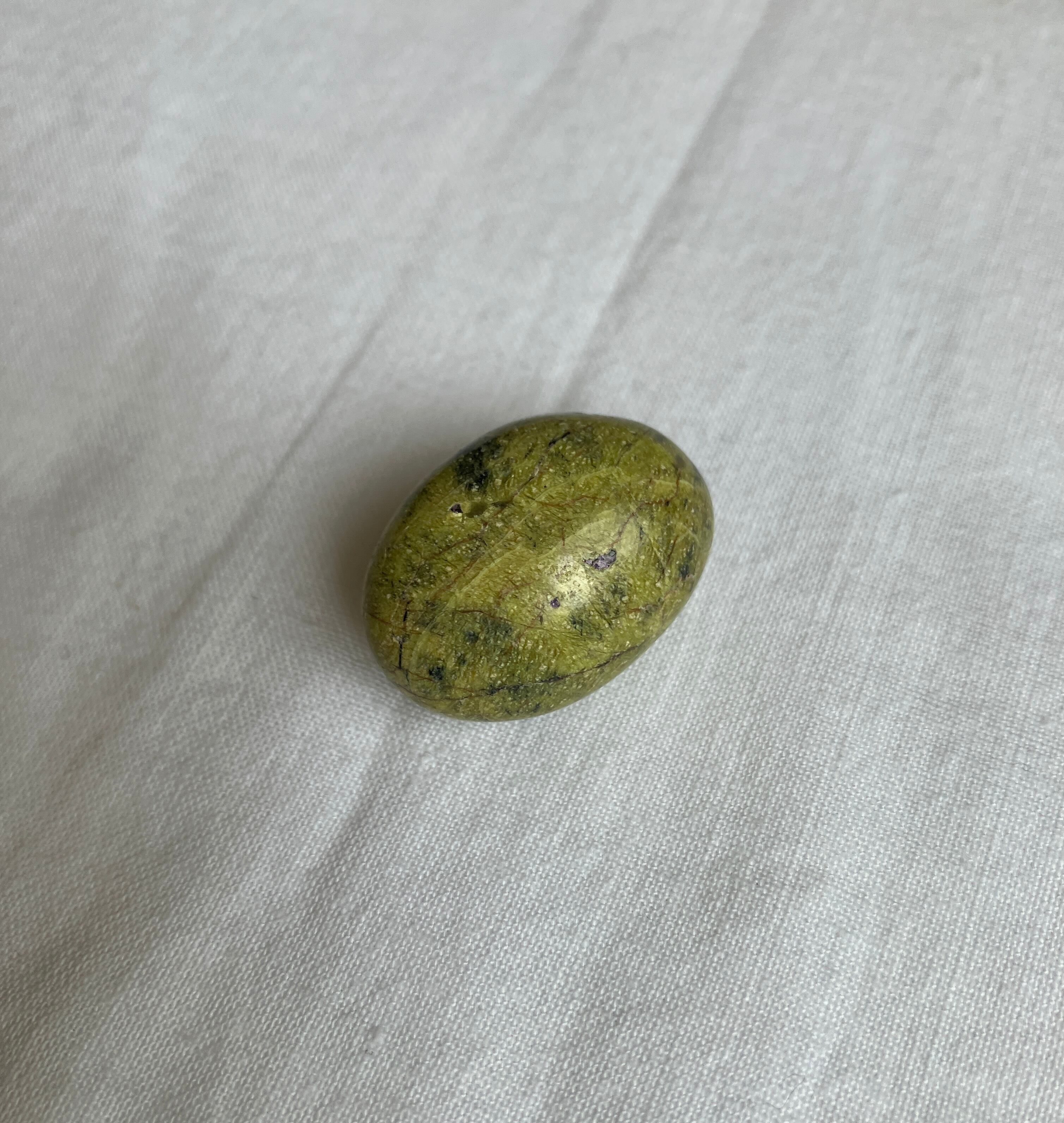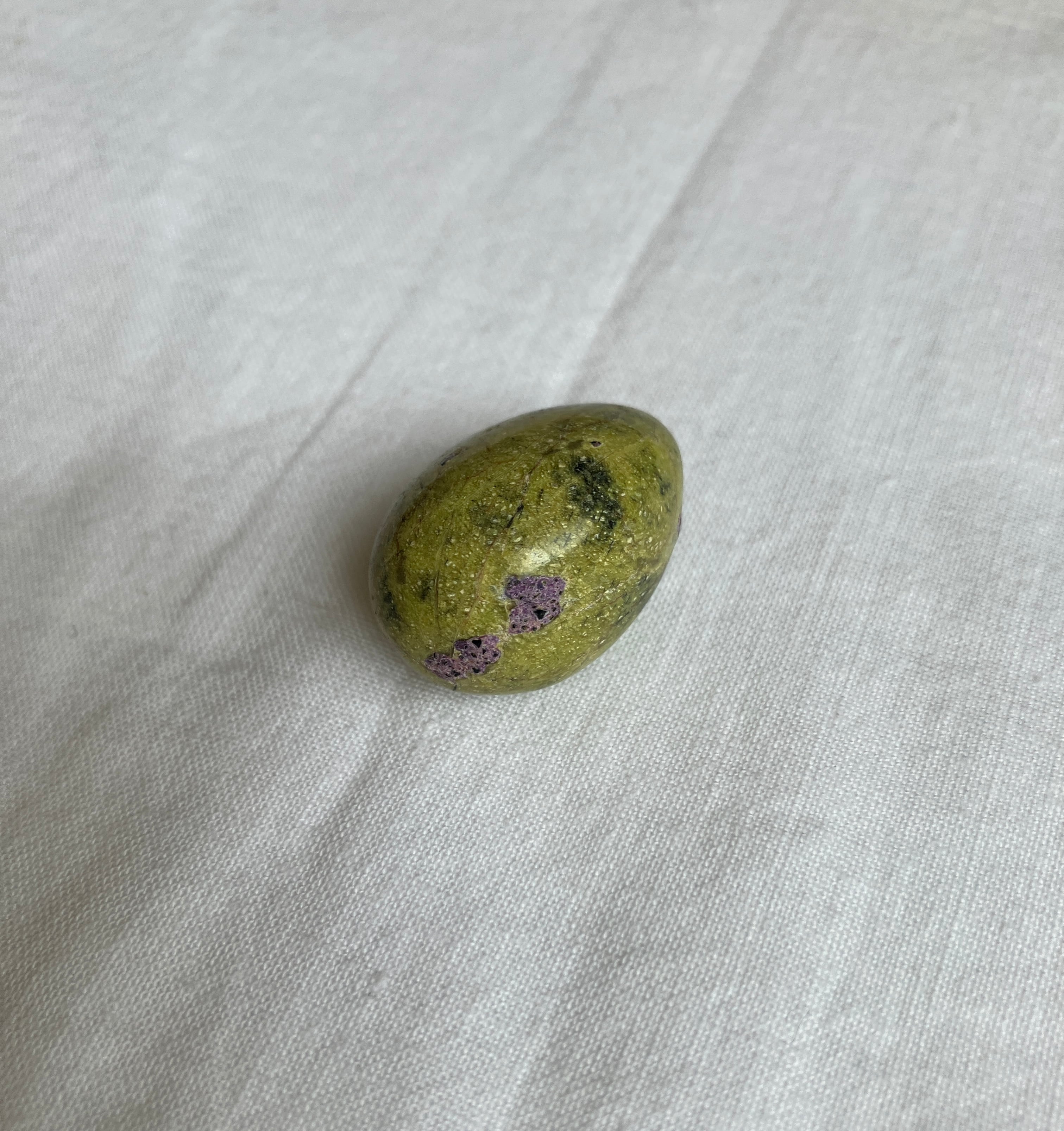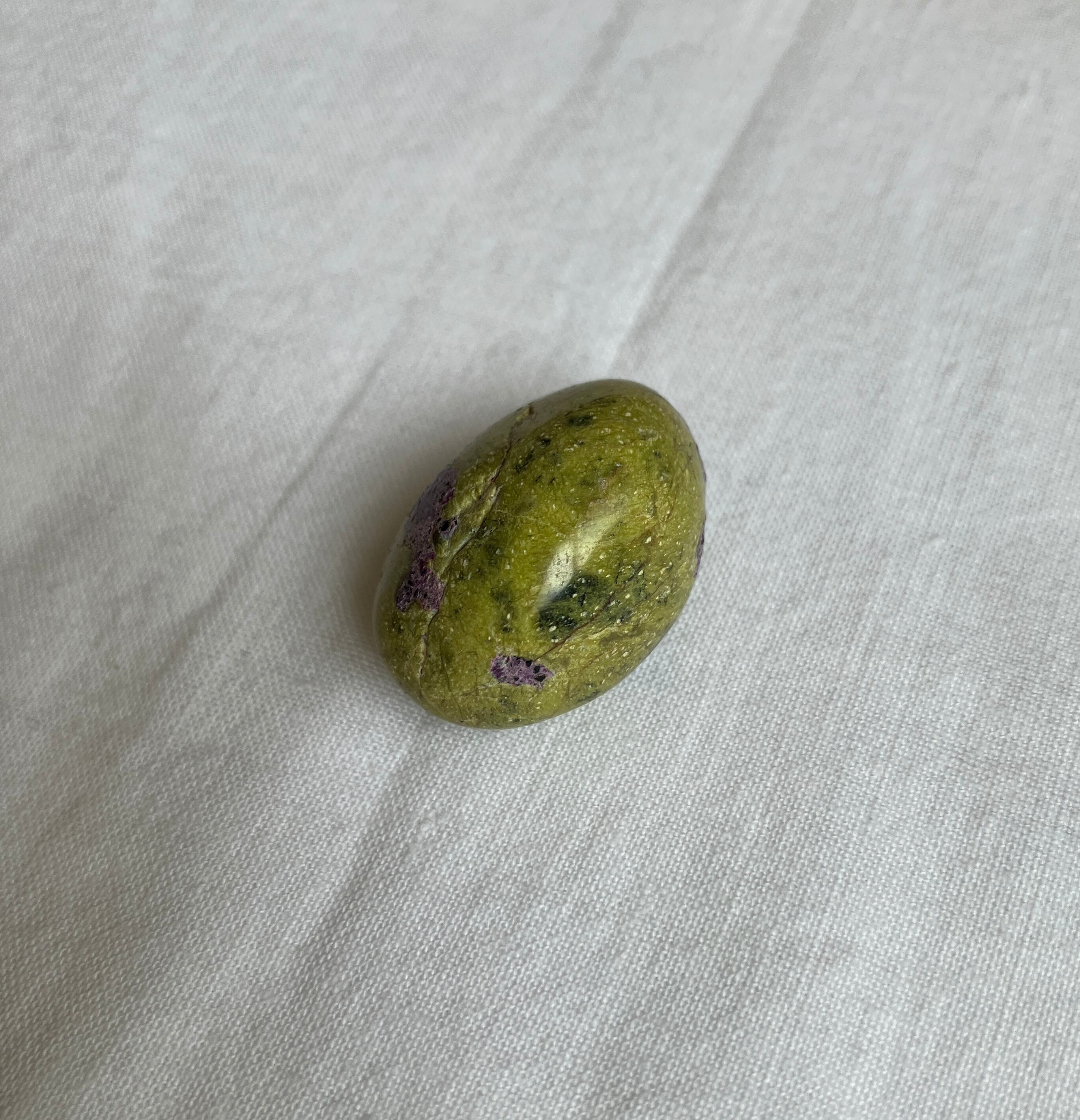 タスマニア島のスティヒタイト丘)で産出され、グリーンのサーペンティンと紫色のスティチタイトが混ざった石です